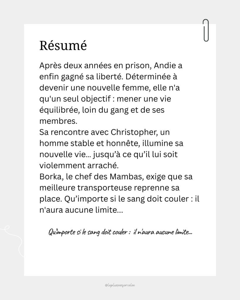 La plume est jolie, Andie et Chris, attachants. J’ai l’impression d’avoir pu suivre l’évolution d’Andie au fil des pages et c’est un point qui m’a bien plu.