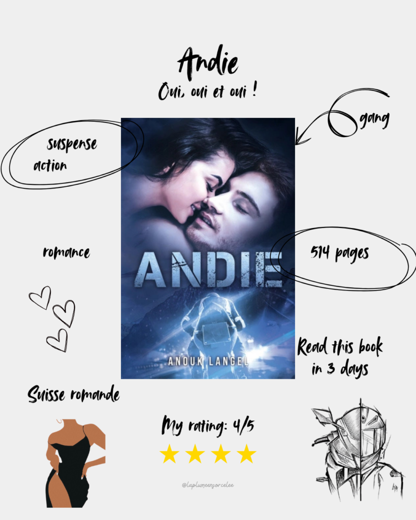 J’ai été immergée dans Andie. Je mentirais si je disais que tout dans cette histoire m’a plu. Toutefois : wow. J’ai beaucoup aimé voyager aux côtés des persos en Suisse. J’ai aimé découvrir l’imagination de ma chère Anouk.