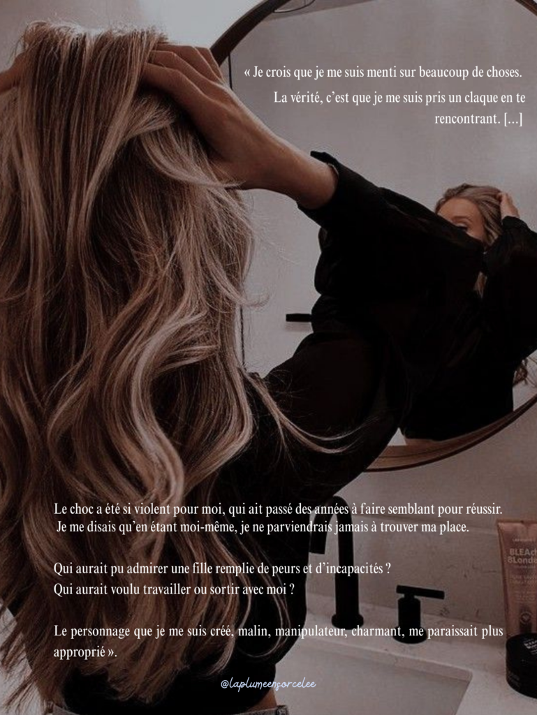 Elle décrit au fil des pages comment elle est tombée amoureuse et s’est accrochée à cet homme. Comment cette relation est devenue toxique, par sa fragilité, le manque de communication et la peur de l’engagement (?).